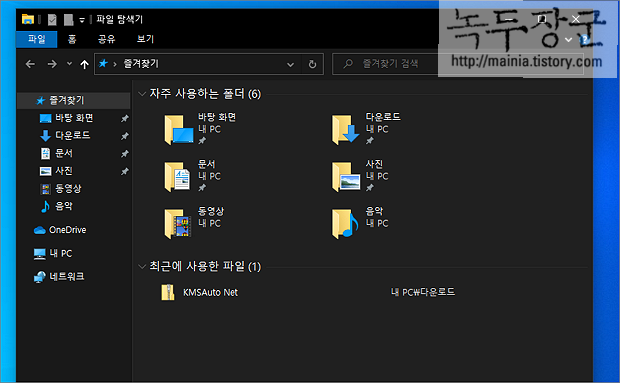 ▼ 윈도우키 + E 단축키를 눌러 탐색기를 띄워보세요. 탐색기도 어둡게 다크모드로 변경되었습니다.