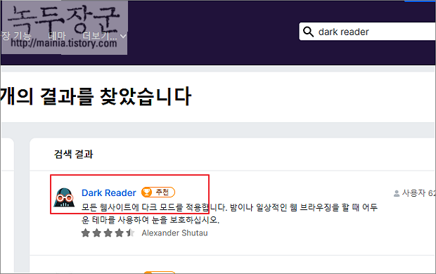 ▼ 검색 결과에서 Dark Reader 를 찾아 상세 페이지로 이동합니다.