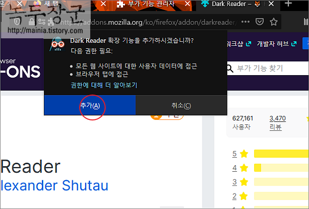 ▼ 화면 상단에 설치 여부를 묻는 팝업창이 뜹니다. 추가 버튼을 눌러 설치를 완료합니다.