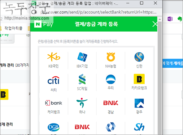 ▼ 세 번째 단계에서 출금 은행과 계좌를 등록합니다. 은행/증권 목록에서 등록을 원하는 회사를 선택하고 다음으로 넘어가서 계좌를 입력합니다.