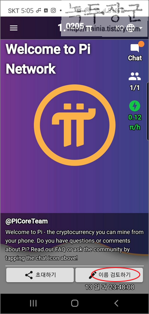 ▼ 정상적인 사용을 위해서는 두 가지 절차를 더 거쳐야 합니다. 첫 번째는 이름 검토하기 입니다. 이름이 파이코인에서 원하는 대로 입력이 되었는지 한번 더 확인해야 합니다.