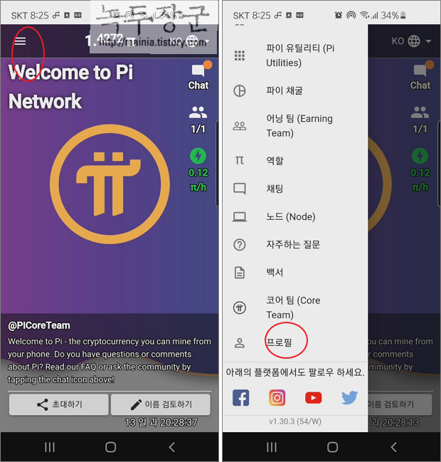 ▼ 두 번째는 계정 인증입니다. 인증을 위해 더보기 > 프로필 메뉴로 이동합니다.