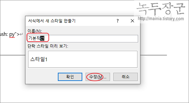▼ 새 스타일 만들기 대화상자에서 스타일 명을 입력하고 수정 버튼을 클릭합니다.