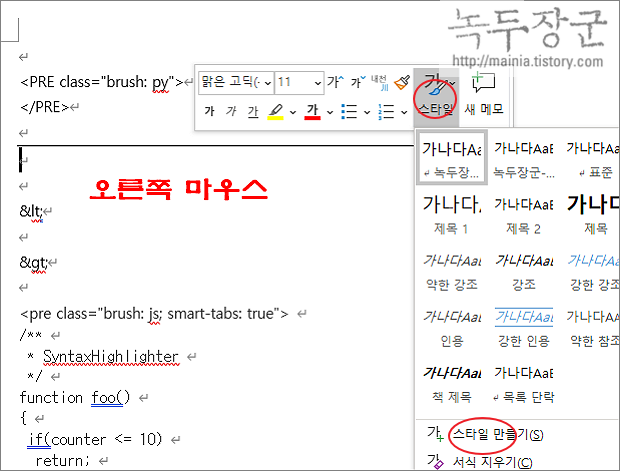 | ◎ 스타일 등록해서 사용하기 |