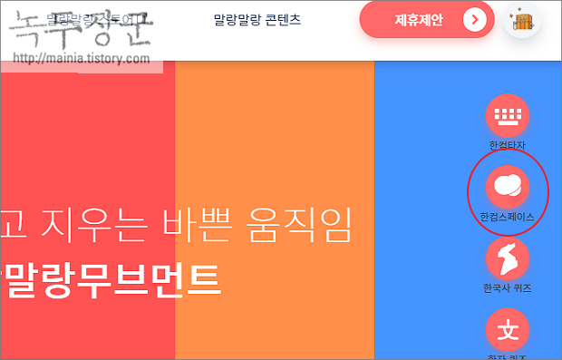 ▼ 계정을 만들고 말랑말랑 서비스에 로그인 했다면 오른쪽 사이드 아이콘 목록에서 한컴스페이스 를 클릭합니다.