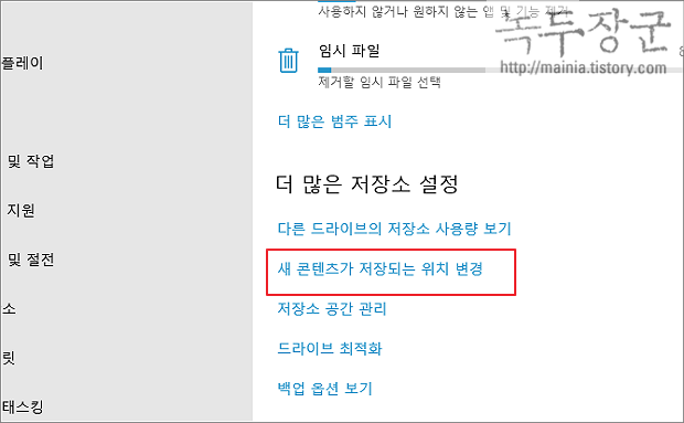 ▼ 저장소 설정 화면에서 새 콘텐츠가 저장되는 위치 변경 링크를 클릭합니다.