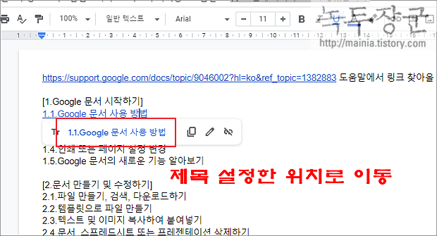 ▼ 이제 제목과 연결한 하이퍼링크는 클릭하는 순간 바로 이동할 것입니다.