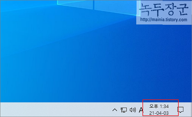▼ 그림처럼 작업표시줄의 날짜가 평소에 보던 것과 다릅니다. 먼저 윈도우10 설정에서 변경하는 방법부터 알아보겠습니다. 작업표시줄 날짜 영역에서 오른쪽 마우스를 클릭합니다.