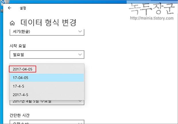 ▼ 목록에서 기존에 보았던 날짜 형식을 선택합니다. 설정을 변경하는 순간 바로 작업표시줄에 보이는 날짜 형식에 적용됩니다.