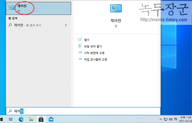 ▼ 다음은 제어판에서 날짜 형식을 변경해 보겠습니다. 윈도우7 에서 작업하던 방식입니다. 검색창에서 제어판을 찾아 실행합니다.