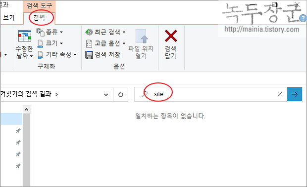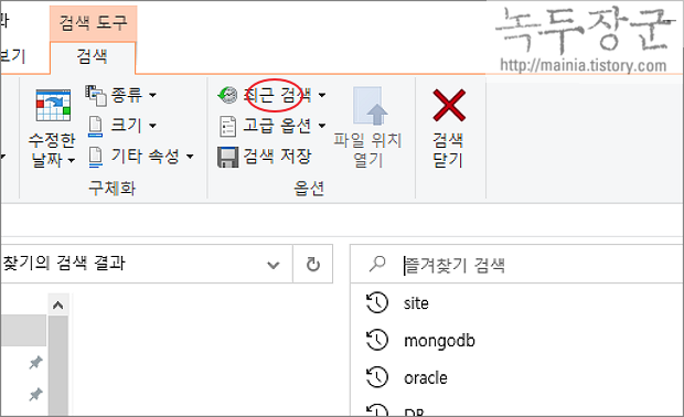 ▼ 리본 메뉴에서 옵션 그룹의 최근 검색 을 클릭합니다.