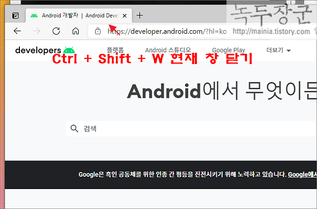 ▼ Ctrl + W : 현재 브라우저 창에서 활성화되어 있는 탭만 닫습니다.