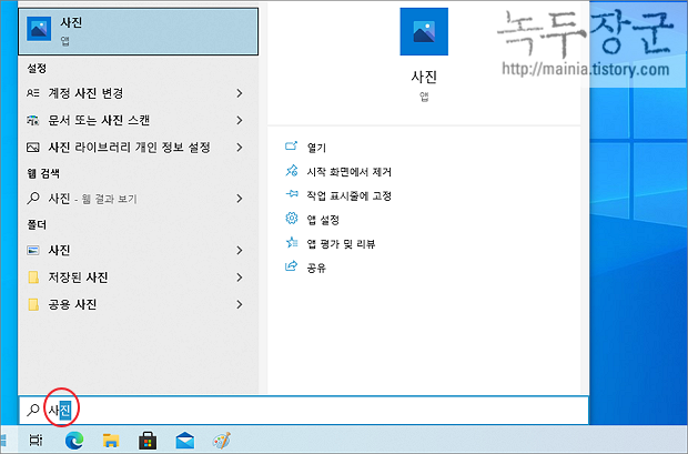 ▼ 검색을 통해서 사진 앱을 찾아 실행합니다. 기본 앱이라 설치하지 않아도 됩니다.