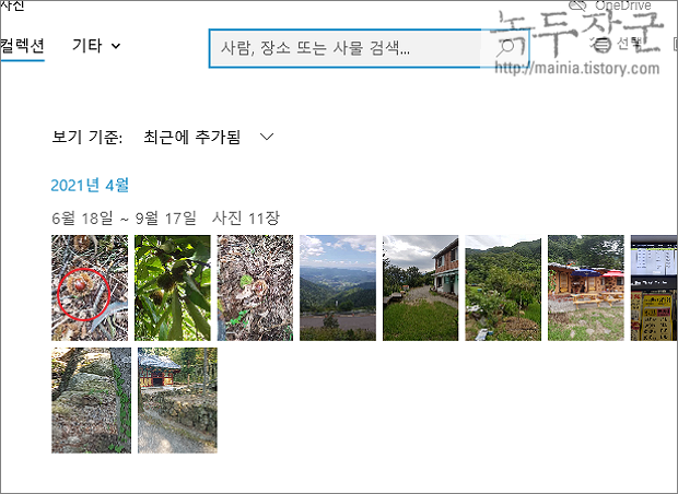 ▼ 슬라이드 쇼를 띄우는 방법은 여러가지가 있습니다. 첫 번째로 사진 중 하나를 클릭해서 상세 사진 뷰로 이동합니다.