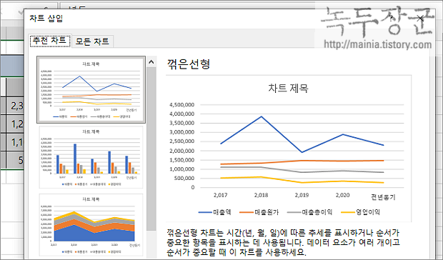 ▼ 차트 삽입 대화상자가 뜨면 적당한 차트 모양을 선택합니다.