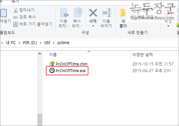 ▼ 압축파일을 풀고 PcOnOffTime.exe 실행 파일을 클릭해서 프로그램을 시작합니다.