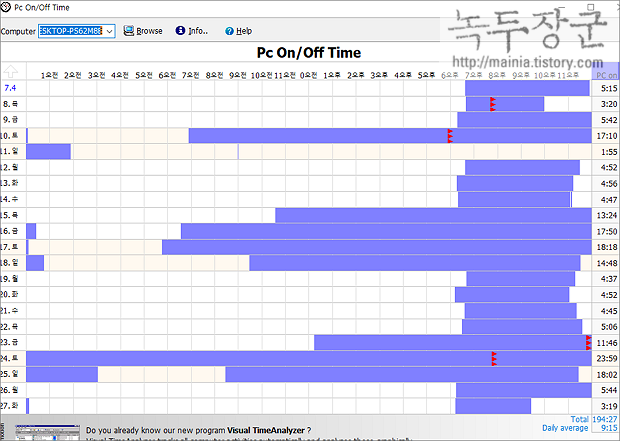 | ◎ 윈도우 사용 기록 유틸리티 Pc On Off Time |