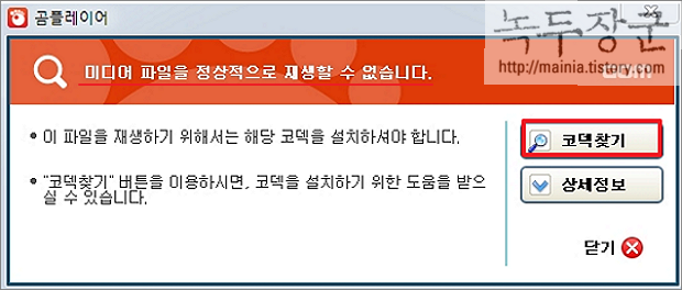 | ◎ 곰플레이어 코덱 자료실에서 다운받기 |