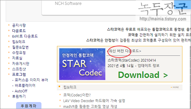 ▼ 어떤 코덱 때문에 문제가 되는지 알 수 없다면 모든 코덱을 모아둔 통합 코덱 프로그램을 설치해 보세요. 대부분의 음성, 영상 코덱들을 포함하고 있기 때문에 한번의 설치로 해결이 가능합니다. 사이트 주소는 아래와 같습니다. 홈페이지에 접속해서 최신 버전 다운로드 링크를 클릭합니다.
