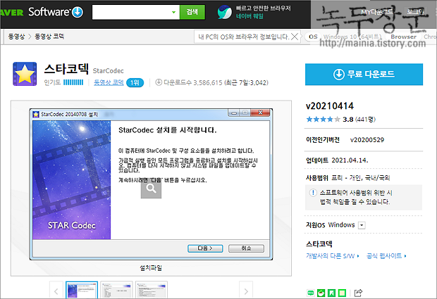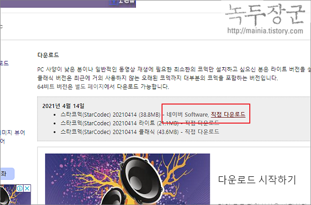 ▼ 해당 코덱을 제공하는 사이트에서 파일을 다운받아 설치해 줍니다. 그런데 코덱 찾기로 설치했는데도 영상이나 음성이 제대로 나오지 않는다면 인터넷에서 통합코덱을 설치해 보세요.