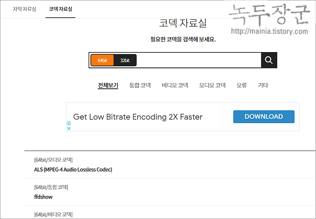 ▼ 곰플레이어에서 제공하는 코덱 자료실로 이동합니다. 상단 검색란을 통해서 코덱을 찾습니다..