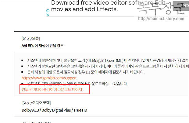 ▼ 코덱 정보를 찾았다면 설명을 읽어봅니다. 대부분 코덱에 대한 설명과 파일을 다운받을 수 있는 사이트로 링크가 걸려 있을 겁니다.