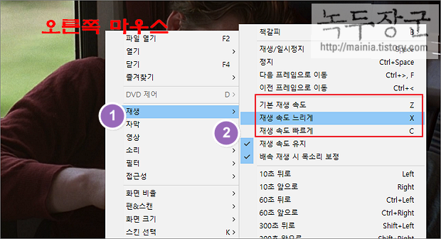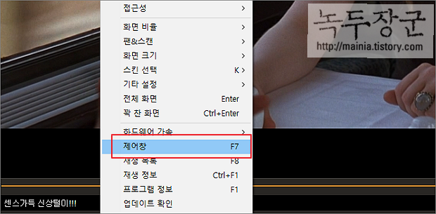 ▼ 영상을 보면서 별도의 제어창을 통해 속도 조절을 할 수도 있습니다. 오른쪽 마우스 > 제어창 이나 F7 단축키를 눌러 제어창을 띄웁니다.