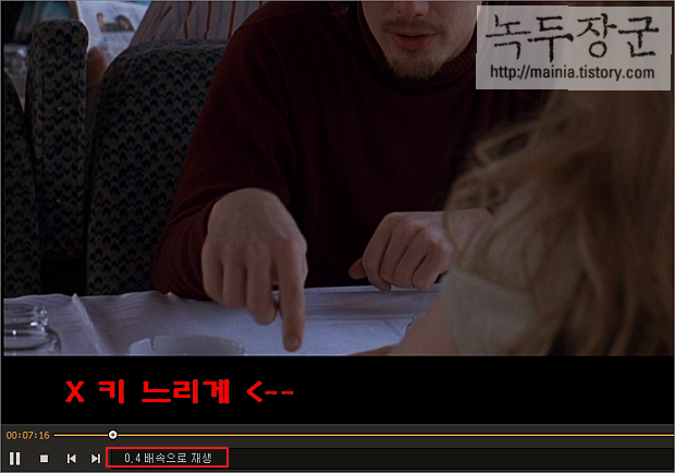▼ 그림처럼 X 키를 누르면 영상이 느려집니다. 아래 상태창에서 현재 영상 속도를 확인할 수 있습니다.