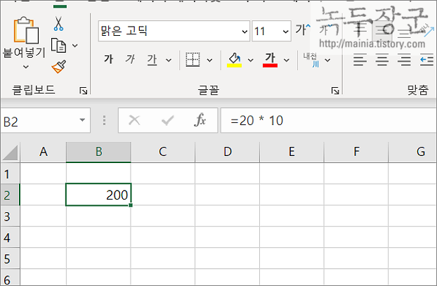 ▼ 다음은 셀에서 등호(=) 로 시작해 숫자와 4개의 특수기호 더하기(+), 빼기(-), 별표(*), 슬래시(/) 로 수식을 입력하고 Enter 를 눌러 완료합니다.