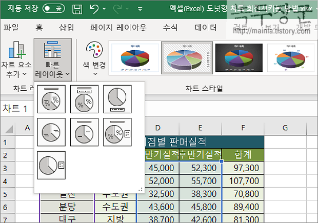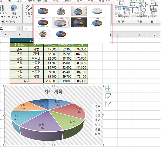 ▼ 스타일 목록에서 하나를 선택하면 바로 차트에 반영됩니다.