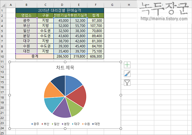 ▼ 분리된 파이와 나머지 조각들의 크기는 차트 패널에 맞게 자동으로 조절이 됩니다.