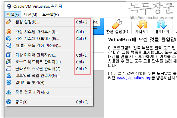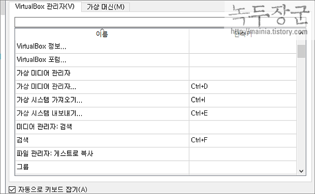 각 VirtualBox 메뉴에는 편리한 사용을 위해 단축키를 가지고 있습니다. 기본적으로 주어진 단축키는 사용자의 편리에 따라 수정이 가능합니다. 버추얼박스에서 단축키를 추가하고 수정하는 방법에 대해 알아보겠습니다.