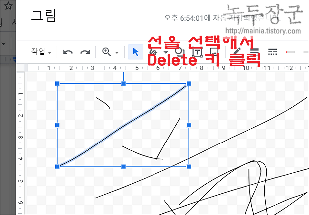 ▼ 그림 입력창에 그린 선들은 별도의 개체이므로 선택해서 삭제가 가능하다.