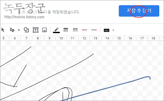 ▼ 서명이 끝났다면 이미지로 변환해서 문서에 추가합니다. 오른쪽 상단 저장 후 닫기 버튼을 클릭합니다.