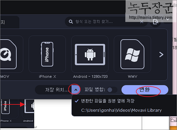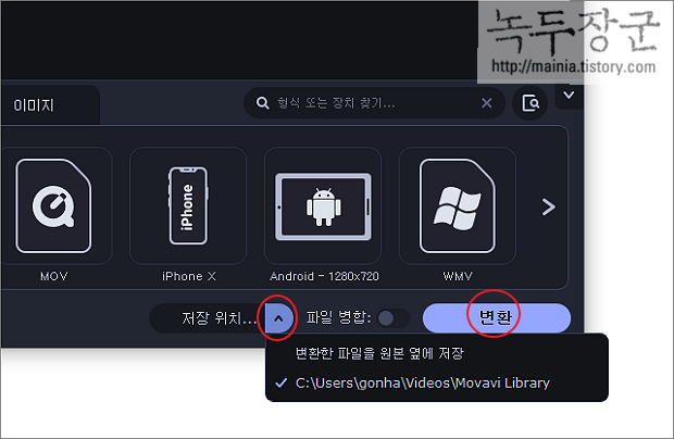 ▼ 저장 위치를 확인하고 변환 버튼을 누릅니다.