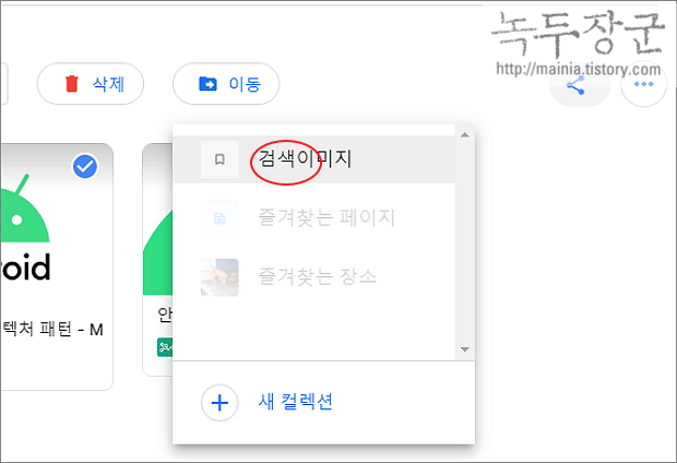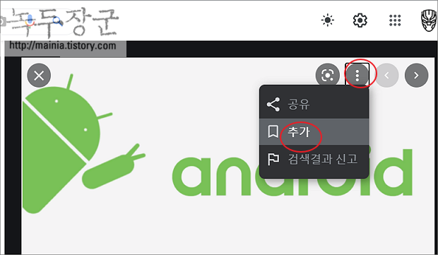 ▼ 더보기 > 추가 버튼을 눌러 이미지를 컬렉션에 저장합니다.