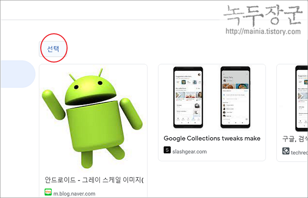 ▼ 저는 검색에서 찾은 이미지를 컬렉션에 저장할 예정입니다. 검색 결과에서 이미지 탭으로 이동합니다.