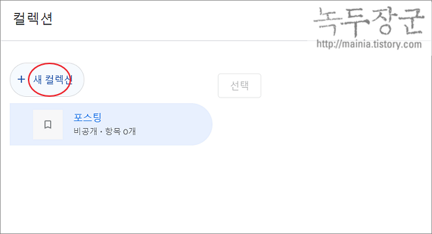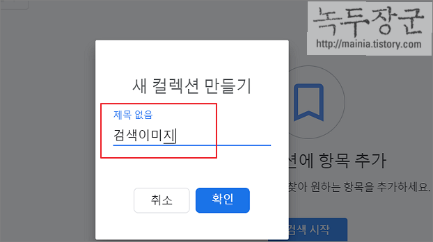 ▼ 새 컬렉션 만들기 팝업창에서 제목을 넣고 확인 버튼을 클릭합니다.