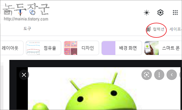 ▼ 오른쪽에 이미지 상세 화면 아래에 보시면 3개의 메뉴가 있습니다. 오른쪽 끝에 컬렉션을 클릭합니다.