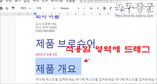 ▼ 복사한 서식을 적용하는 방법은 간단합니다. 마우스로 텍스트를 선택하면 바로 서식이 반영됩니다.