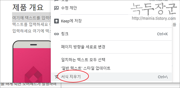 ▼ 이전 서식으로 돌리고 싶다면 Ctrl + Z 단축키를 눌러 작업 이전으로 돌리거나 오른쪽 마우스를 눌러 서식 지우기 메뉴를 선택합니다.