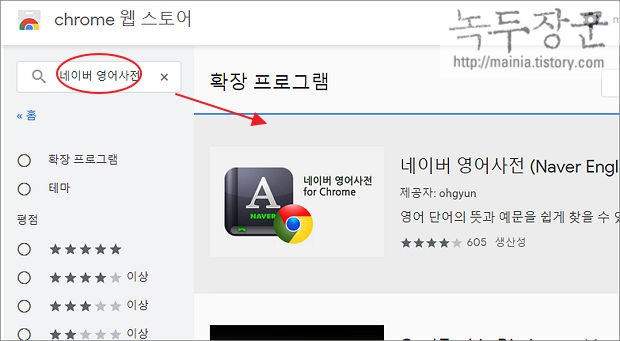 ▼ 확장프로그램을 다운받기 위해 chrome 웹 스토어로 접속합니다. 아래 링크를 클릭해서 네이버 영어사전을 검색합니다.