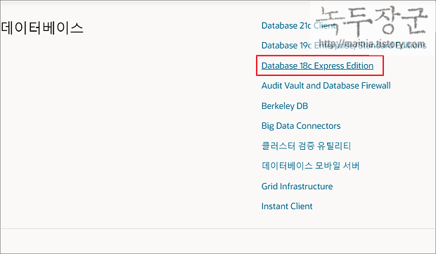 ▼ 데이터베이스 목록에서 "Database 18c Express Edition" 을 찾아 클릭합니다.