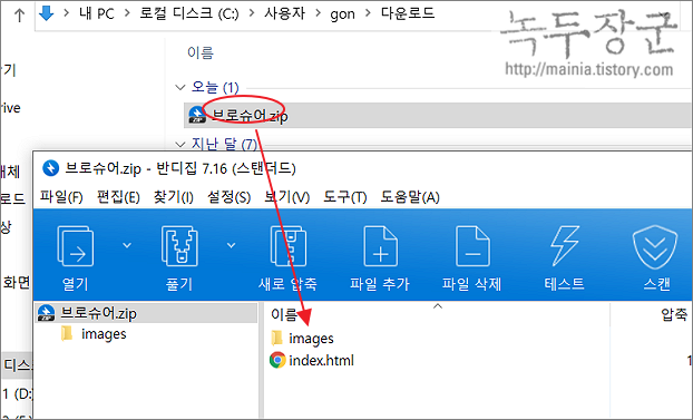 ▼ 다운받은 zip 파일을 열어보세요. 이미지 폴더와 index.html 파일이 분리되어 있다는 것을 확인할 수 있습니다.