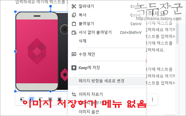 ▼ 보통 문서 도구에서 제공하는 이미지 저장 메뉴는 존재하지 않습니다. 이미지를 선택한 후 오른쪽 마우스를 눌러 보시면 바로 알 수 있습니다. 어떤 경로를 통해 문서 전체의 이미지를 다운로드할 수 있을지 하나씩 알아봅시다.