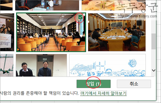 ▼ 이미지를 찾았다면 선택하고 아래로 내려가서 삽입 버튼을 클릭합니다.