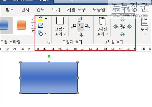 ▼ 도형 스타일에서 마음에 드는 템플릿을 찾을 수 없다면 디테일한 수정을 진행합니다. 그림자 효과, 3차원 효과, 색상 변경, 그라데이션, 질감 등 리본 메뉴에서 제공해 주는 기능을 사용해 보세요.