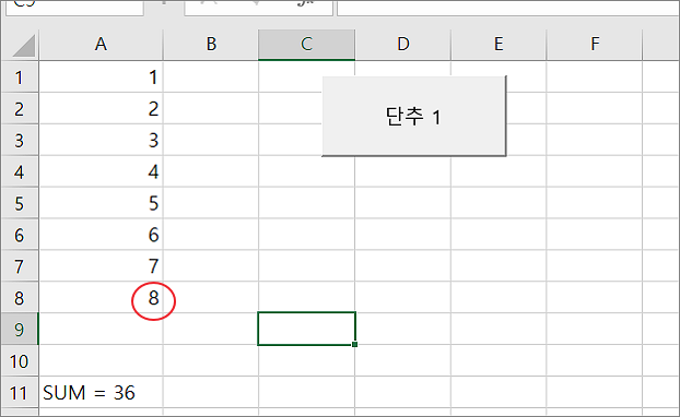 ▼ 그림에서 보듯이 합계값이 30 이상인 9 가 되기 전 8까지 반복하고 종료한 결과입니다.