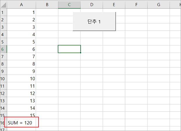 그림에 버튼을 누르는 순간 셀 값을 읽어서 합계를 표시합니다.