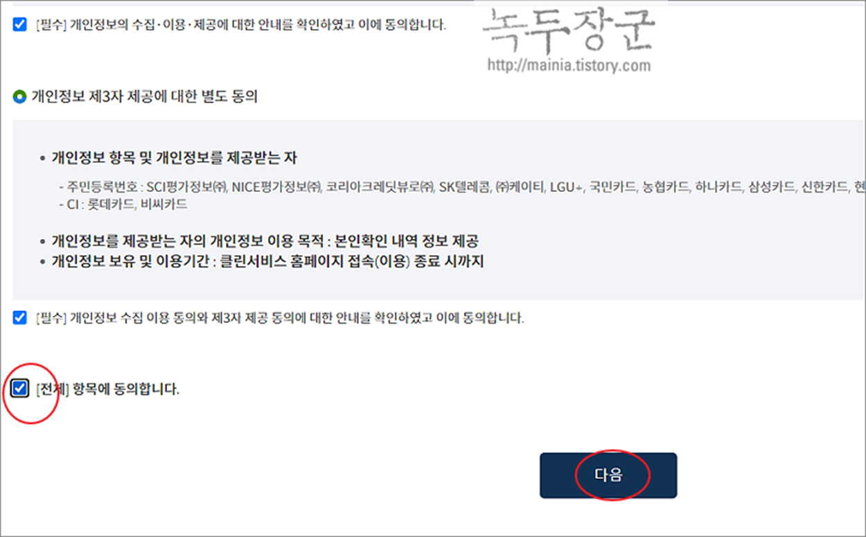 ▼ 인증이 끝나면 하단으로 내려가서 다음 버튼을 클릭합니다.